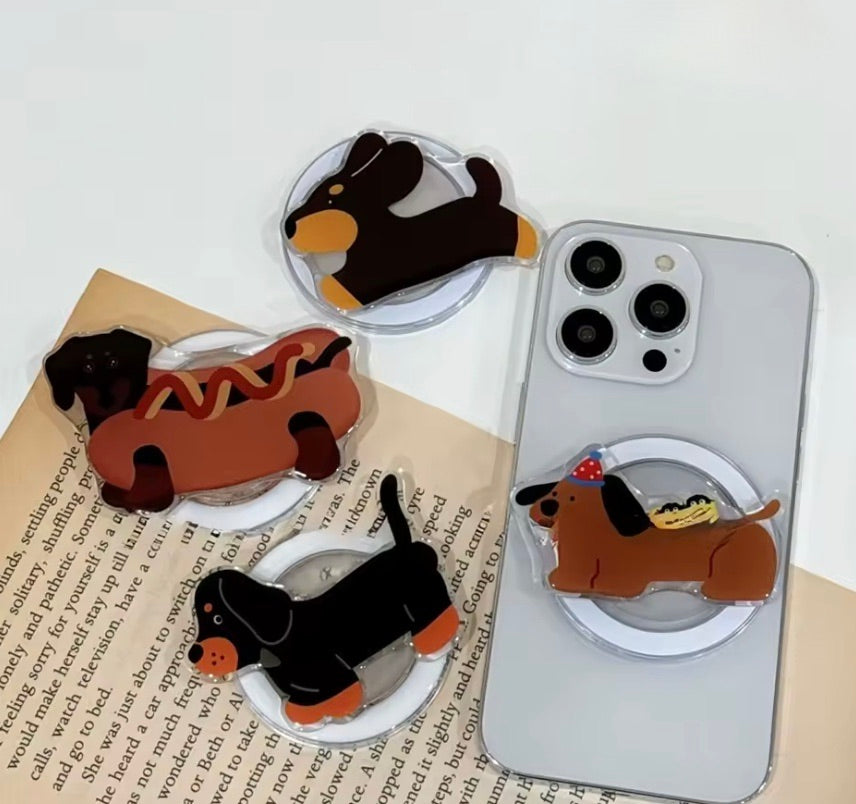 This French Dachshund Mobile Phone Stand & Grip offers a versatile solution for your phone with its grip holder socket and expanding stand. Enjoy hands-free usage and convenient support for your device. Its foldability and compatibility with universal brands make it a perfect choice for any phone.