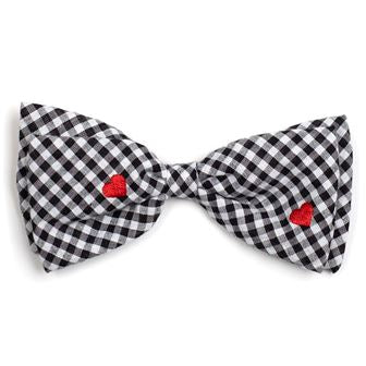 Bow ties for the dapper dog (or cat)! Easy to attach to or remove from any collar with a secure touch fastener strip on back. Available in size small and large.