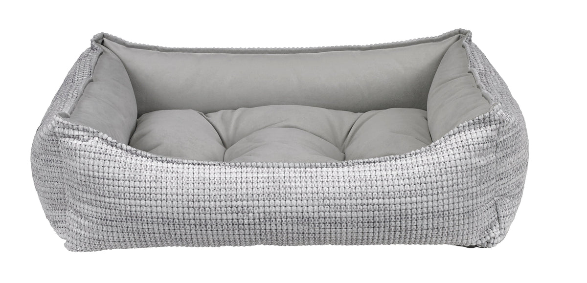 Easy Entry, Scooped Design! Stylish two-tone fabric combination and European style "pinched edge" trim detail. Removable tufted center cushion. Generous sizing maximizes sleeping area. Great design for older or arthritic dogs.