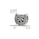 Antiqued sterling silver design Approximate size 9 x 9mm with a 4mm core Fits most 3mm bracelets and necklaces Weight is Approximately 1.93 grams