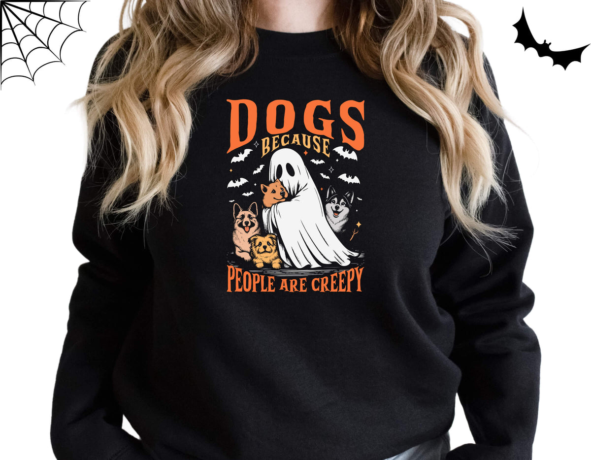 Halloween Shirt | Sweatshirt | Unisex Crew Neck | Crewneck Sweatshirt | Dog Lover | CREW HALLOWEEN DOGS BECAUSE PEOPLE ARE CREEPY