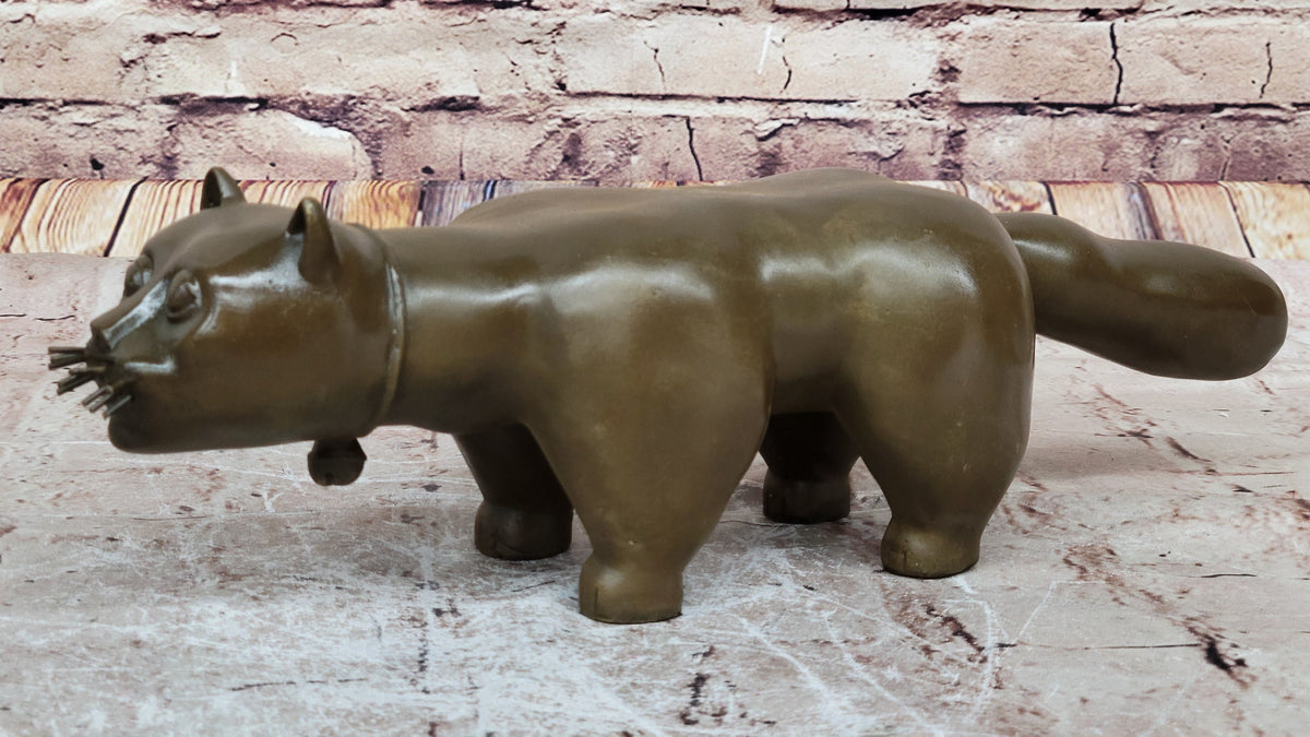 Handcrafted Large Botero Cat Gato Feline Animal Bronze Sculpture Figurine Figure