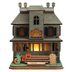 Light this Haunted Mansion at your own risk! With a small hole on its underside designed to borrow a standard bulb from your Christmas tree your mansion will light up. Upon lighting your cottage, you will immediately discover the first of many secrets, the spook-tacularly crafted scene inside. What else can you find lurking around this haunting scene?