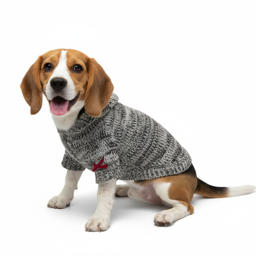 This sweater boasts a unique mix knit pattern of colors crafted from a luxurious cashmere blend, ensuring that your furry friend looks exceptionally stylish. The functional front zipper design adds a modern edge to the classic pullover style, making it easy to put on and take off. But that's not all – we've thought about your convenience too, with a leash hole seamlessly integrated for your outdoor adventures.