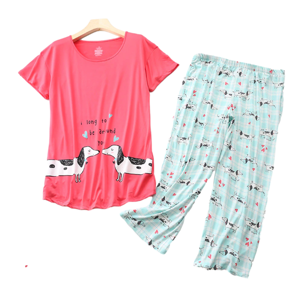 Women's 2-Piece Pajama set is made of 95% Recycled Polyester, 5% Spandex. Comfortable and lightweight.