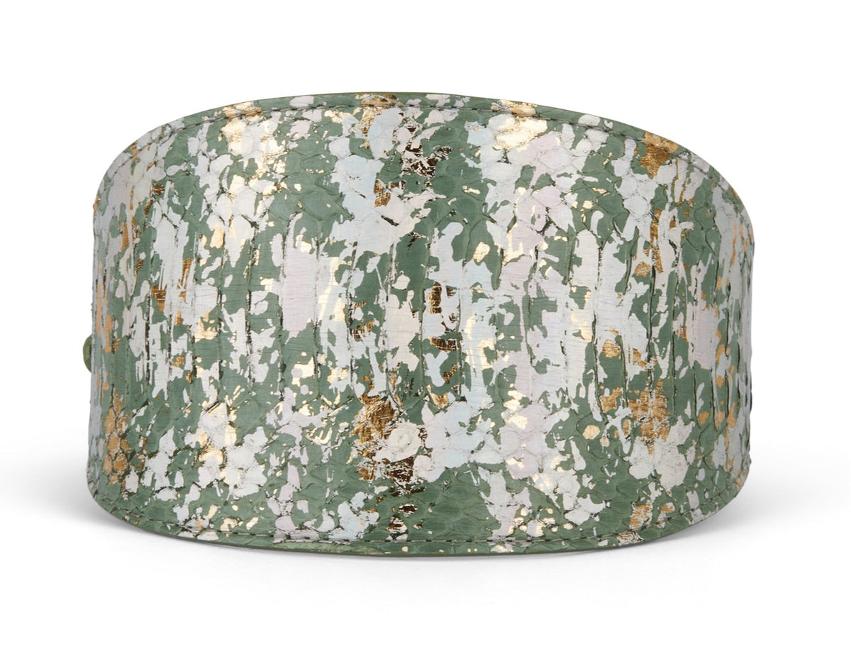 Iridescent Art Deco Green/Gold/Silver Custom Snake 4 Wide Style Collar