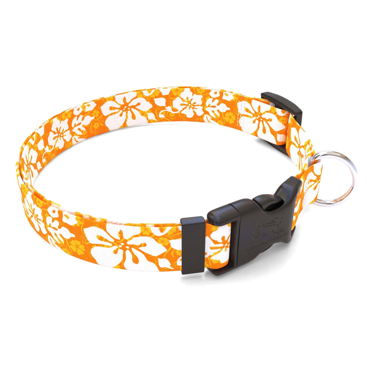 Say Aloha to this tropical paradise inspired floral dog collar by Yellow Dog. The Hawaiian flower print and its array of color options will have you and your pup ready for the luau. Take a rest under the palm trees and prepare to embrace your Aloha state of mind. Designed for everyday wear, these collars combine comfort, security and style. HandMade in our plant in Indian Trail, NC with some Global Materials with durable, high-quality polyester that is machine washable. Easy to put on, these collars have plastic buckles with rounded edges for comfort and a nickel-coated D-ring. They come in different sizes with adjustable slides for a custom fit, even for growing puppies. Plus, all sizes come with a separate ring to attach an ID tag. And you can grab a matching leash to complete the look!