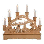 This 10.25-Inch LED Wooden Christmas Village with Church and Windmill from Kurt Adler is a beautiful and unique addition to any holiday décor. Its design features 6 candles, a small house and church with a windmill. When switched on, this village lights up with LED lighting for a warm festive glow and plays, "Silent Night."