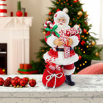This 10.5-Inch Santa with Candy and Sack from Kurt Adler is a fun and festive addition to any holiday décor. Santa Claus is featured here in his classic red and white suit and hat. He has an armful of classic peppermint candies and has a large red sack at his feet also filled with peppermint candies.