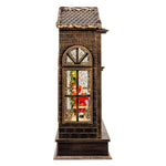Capture the magic of a cozy Christmas scene with the Kurt Adler 10-Inch Battery-Operated LED Lighted Tree Water Lantern. Designed like a charming window view into a festive holiday home, this lantern features a beautifully decorated Christmas tree surrounded by stockings, gifts, and Santa himself. Warm LED lights illuminate the scene as glitter gently swirls inside, creating a captivating snowfall effect. With its vintage gold-toned finish and classic design, this battery-operated lantern adds a nostalgic glow to mantels, shelves, or tabletops all season long. Requires 3 AA batteries, not included.