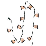 This 10-Light Nightmare Before Christmas Jack Skellington Light Set from Kurt Adler is a fun and unique addition to any holiday home décor. This light set features the head of Jack Skellington with a smile on his face and a raised eye and bat bow tie. The set consists of 30" lead wire, 12" spacing, and an end connector all UL approved. The perfect gift for a fan of the Nightmare Before Christmas.