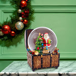 This 100MM Santa musical water globe from Kurt Adler is a beautiful and festive addition to any holiday décor! The clear globe houses Santa with his bag of presents. Santa is shown decorating a green Christmas tree. This water globe sits on top of a brown chest-styled base.