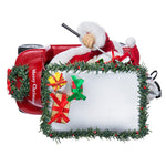 Part of Kurt Adler's Fabriché collection, this 11.25-Inch Fabriché Santa Driving Golf Cart from Kurt Adler is a fun and festive addition to any holiday décor. Perfect for golf fans, Santa Claus is featured here wearing his traditional red and white hat and suit. He is sitting in a red golf cart that reads "Merry Christmas" and is decorated with presents, garland, and a wreath for an extra festive touch.