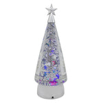 Add a mesmerizing touch to your holiday décor with Kurt Adler's 11.5" Battery-Operated USB LED Rotating Christmas Tree. This captivating ornament features a clear Christmas tree filled with glittering water that swirls and spins while the tree slowly rotates. Illuminated by 1 RGB color changing LED light, the shimmering glitter reflects beautifully, creating a magical, snow-like effect. Powered by batteries or USB, it offers convenient placement anywhere in your home. Perfect for tabletops, mantels, or festive centerpieces, this rotating tree adds sparkle and motion to your celebrations, making it an enchanting highlight of your holiday display.