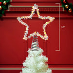 Add a beautiful twinkling touch to the lighting of your Christmas tree with Kurt Adler's 12.2-Inch Tinsel Star Tree Topper with Warm White LED Lights. This 12.2-Inch tree topper is lit with 55 warm white LED lights. This LED tree topper features a 9.8-foot lead wire with .63" bulb spacing and is for indoor use only.
