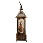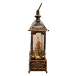 This 12-Inch Battery Operated Warm White LED Lighted Santa With Animals Lantern is a charming addition to any holiday décor. This lantern features a black, rustic base with Santa and forest animals with a snowy forest. When switched on, a spotlight falls on Santa and glitter twirls around for a snowy scene. Powered by 3 AA batteries (not included).