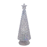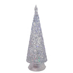 Add to your holiday lighting and décor with this 13-inch battery-operated RGB LED Color-Changing tree table piece from Kurt Adler. Its clear Christmas tree design is lit from within by color-changing RGB LED lights for a bright and festive glow and has swirling glitter in water.