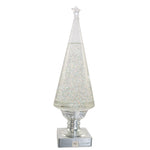This battery-operated clear and silver lava light table top Christmas tree Décor from Kurt Adler is an elegant addition to any holiday décor! Its clear cone shape features lava lamp-like silver center. When activated the tree is illuminated from underneath and silver glitter swirls through the water.