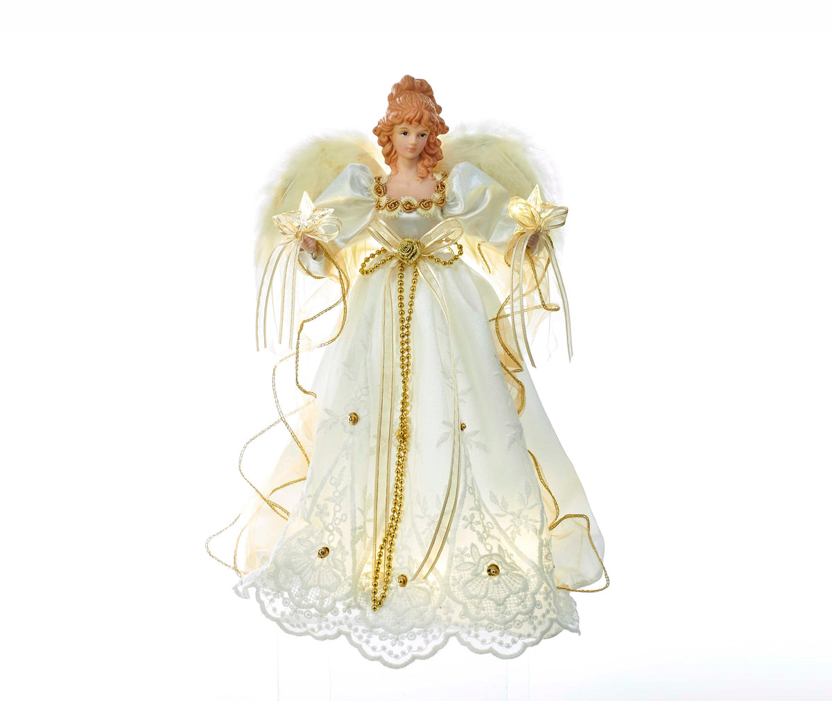 Kurt Adler 14-Inch Battery-Operated Ivory and Gold LED Angel Treetop