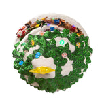 Kurt Adler's 15.7-Inch Battery Lighted Musical Christmas tree is a festive addition to any home or office décor. The green glittered Christmas tree features white glittered snowcaps and a lighted star treetop. Inside the tree are train tracks that weave around. When switched on, the train moves, Christmas tunes play and multicolor LED lights illuminate the tree and reindeer. Powered by 3 AA batteries (not included).