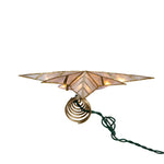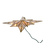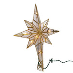This 16.7-Inch UL 10-Light Bethlehem Star Treetop from Kurt Adler is a unique way to accent the lighting on your Christmas tree. With gold glitter tips and gold glitter embellishments, this beautiful treetop has clear bulbs that illuminate the natural capiz material. It boasts 10 clear incandescent bulbs, a 30-inch lead wire and includes 4 spare bulbs and 2 spare fuses. This is a perfect addition to any holiday decor.