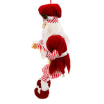 This 17-inch Kringle Klaus Peppermint Chef Santa from Kurt Adler is a fun and festive addition to any holiday décor. Part of the Kringle Klaus collection, this Santa Claus is wearing a red and white outfit with decorated white belt, a chef's hat and red shoes. he is holding a red and white candy cane in one hand.