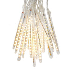 Kurt Adler's 32-Foot 200-Light 20-Piece Meteor Shower Snowfall Light Set is a captivating and unique lighting solution that can transform your outdoor space into a winter wonderland. Designed to mimic the look of falling snow or meteors streaking through the night sky, these lights create a mesmerizing and enchanting visual display. The individual LED lights are spaced along the wires in a way that makes them appear as if they are falling from the sky, creating a magical and mesmerizing display. This set includes 20 light tubes, each with a series of 10 LEDs. Each of the 20 tubes hangs vertically, and the entire set covers a substantial area. They can be hung from tree branches, eaves, or other outdoor structures. The "falling snow" or meteor effect is visually stunning and can be used for holiday decorations, winter weddings, or to create a magical atmosphere for any outdoor event. With spacing of 20" between the 20 tubes, the lighted length is 32 feet and the item includes a 9 foot lead wire for a total length of 40.6 feet.