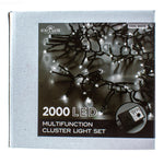 This Kurt Adler 2000-cool white LED cluster lights garland with green wire is a great addition to any lighting décor! With 65-feet of lights this cluster light set will be a modern addition to your home holiday lighting décor. This set features 2000 cool white 3MM LED bulbs with a 8-function remote control.
