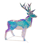 Kurt Adler's 35.4-Inch Pre-Lit Cool White LED Multifunction Holographic Reindeer is a festive and eye-catching holiday decoration that features a reindeer-shaped silhouette made of holographic material. This decorative piece is illuminated with 500 cool white LED lights and offers various lighting functions for a dazzling and captivating display during the holiday season. The reindeer silhouette measures 35.4 inches, making it a prominent and visually striking addition to your outdoor or indoor holiday decor. It's 8 Functions include combination, in waves, sequential, slo-glo, chasing/flash, slow fade, twinkle/flash and steady on. The reindeer includes a metal base and four U-shaped stakes so that it can be used outdoor as well as indoor.