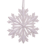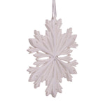 Celebrate the season with Kurt Adler's 4-Inch Elegant Snowflake Ornament with Swarovski Elements. This resin white elegant snowflake is exquisitely embellished with silver glitter and 7 Swarovski Elements. The center of the snowflake features one 4mm Swarovski element and is surrounded by six 2.5mm Swarovski elements. This ornament is for indoor use only.