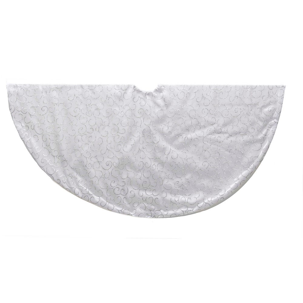 This Kurt Adler 48” Silver Glitter Swirl Treeskirt is a beautiful, festive way to add to your holiday décor. This tree skirt features a white background with intricate silver glitter swirl designs.