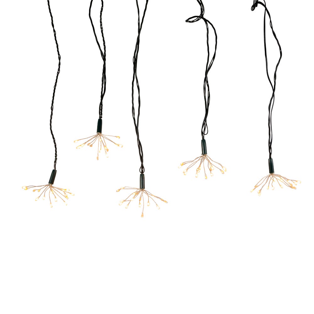 Kurt Adler's 75-Light Cluster Burst Classic White Superbright LED Twinkle Light Set This light set is a festive and sparkling lighting decoration that is perfect for adding some cheer and brightness to your holiday decor. It features 5 clusters of 15 lights (5 twinkling and 10 steady) for a total of 75 LED lights that are arranged along a silver wire, creating a burst of sparkling light. The lights are classic white in color and are super bright, giving off a dazzling and eye-catching glow that is sure to add some sparkle and shine to your holiday decor. The light set can be used indoors or outdoors, making it a versatile and convenient choice for adding some extra holiday cheer to your home or event. This set features 35.43" spacing between clusters, 5.9" light spacing and a 9' green lead wire.