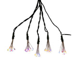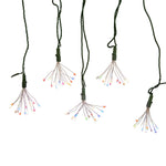Add some light to your home or holiday décor with Kurt Adler's 75-Light Cluster Lights and Multi-Color Twinkle LED Lights with Green Wire. This light set features 5 bursts with 15 lights per burst for a total of 75 lights. There is a silver 36-inch wire between each burst as well as a 118-inch lead wire. This light set can be used both indoor or outdoor.