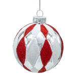 Kurt Adler 80MM Glass Red, White and Silver 6-Piece Ball Ornament Set