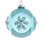 Kurt Adler 80MM Glass Teal Snowflake 6-Piece Ball Ornament Set