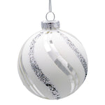 Kurt Adler 80MM Glass White Glittered Swirl 6-Piece Ball Ornament Set