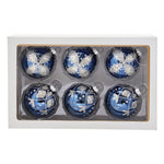 These 80MM Navy Blue Glass Ball Ornaments, 6-Piece Set with embellishments from Kurt Adler are a festive addition to your holiday décor or Christmas tree. Each navy glass ball ornament is expertly decorated with silver glitter in a flower pattern with clear gemstones and silver glitter in a diamond pattern with clear gemstones.