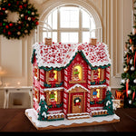 Add a fun classic touch to your holiday décor with this 9.5-Inch Battery-Operated Gingerbread LED House with Music Box from Kurt Adler. This two level table piece features a gingerbread base and a candy design, including red and white peppermint candies, sprinkles and glittered Christmas trees. In each window of this stunning show piece, an expertly decorated gingerbread cookie appears and when switched on, each window is illuminated from within by one C7 bulb and plays the song We Wish You a Merry Christmas. This item used 3 AAA batteries (not included).