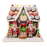 Sweeten up your holiday décor with the whimsical charm of the Kurt Adler 9.5-Inch Battery Operated LED Gingerbread Cookie House. This enchanting tabletop decoration is bursting with delightful details; from cookie-like rooftops and candy swirl accents to peppermint columns and cheerful nutcracker figures flanking the doorway. Colorful gumdrops and frosting-like trim complete the festive design, making it look almost good enough to eat! The house lights up from within with warm LED illumination, bringing a cozy glow to mantels, shelves, or dessert-themed displays—all powered by batteries for easy placement. Requires 3 AA batteries, not included.