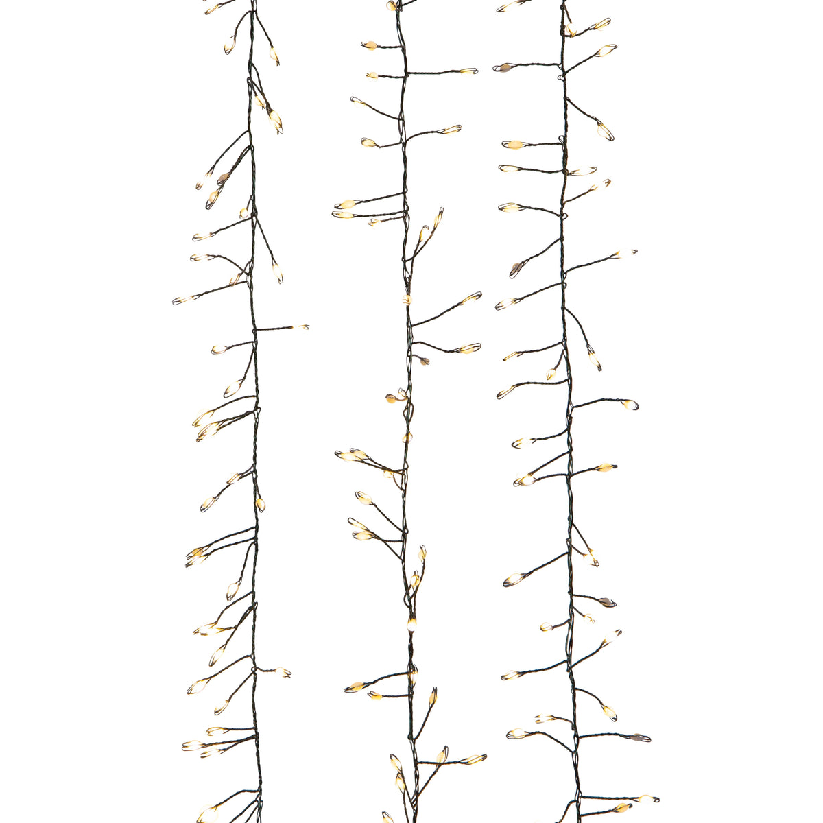 Add some light to your home or holiday décor with Kurt Adler's 9.8-Foot 300-Light Warm White LED Fairy Light Cluster Garland. This cluster garland features 300 warm white LED bulbs, with 20% twinkling and 80% steady lights. This garland includes copper wire, a 9.8-foot lead wire, 4-inch bulb spacing and an outdoor adapter.