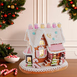 Add a jovial touch to your holiday decor with this 9-Inch Gingerbread House with LED Lights from Kurt Adler! This house is festively decorated with gingerbread and candy-inspired detailing. It's pastel pink and white colors...