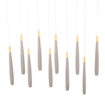 Add some light to your home or holiday décor with Kurt Adler's Battery-Operated 6-Inch Floating Candles with String 10-Piece Ornament Set. Each candle light in this set has a warm white LED bulb and hangs from a string to give the ornament a floating effect. This 10-piece set includes a 39.37-inch hanging string and a remote control with on, off and timer options (6 hours on/18 hours off). This set requires 1 AAA battery, not included.