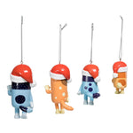 This Bluey and Family 4-Piece Ornament Set Set set from Kurt Adler is a fun and festive addition to your holiday décor or Christmas tree. Included in this set are Bluey, her sister Bingo, her mom Chilli and her dad Bandit, each are wearing a red and white Santa hat.