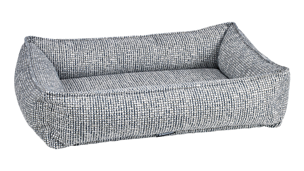 Sleek Modern Look! Contemporary, streamlined shape and clean lines define this trend setting design. Dual layer, fibre topped foam inner cushion provides orthopaedic support and plush comfort. Unique one piece design - bottom cushion is secured into the bottom of the bed, making this a great solution for dogs that tend to dig and chew removable cushions.