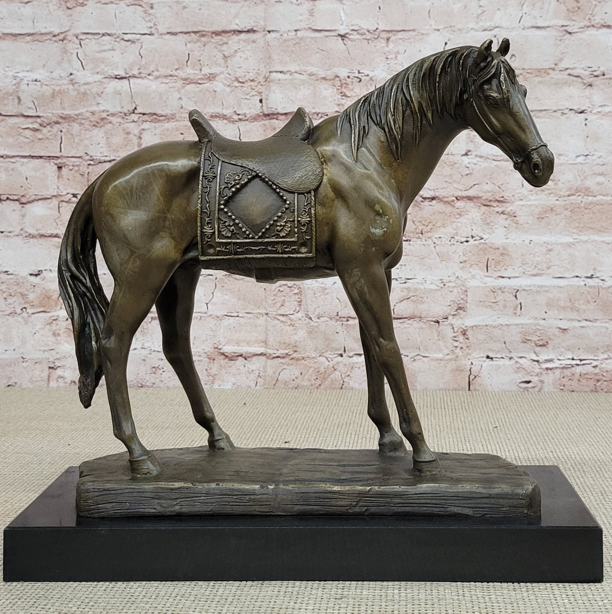 Large Original Loving Horse with his Saddle Western Cowboy Bronze Sculpture sale