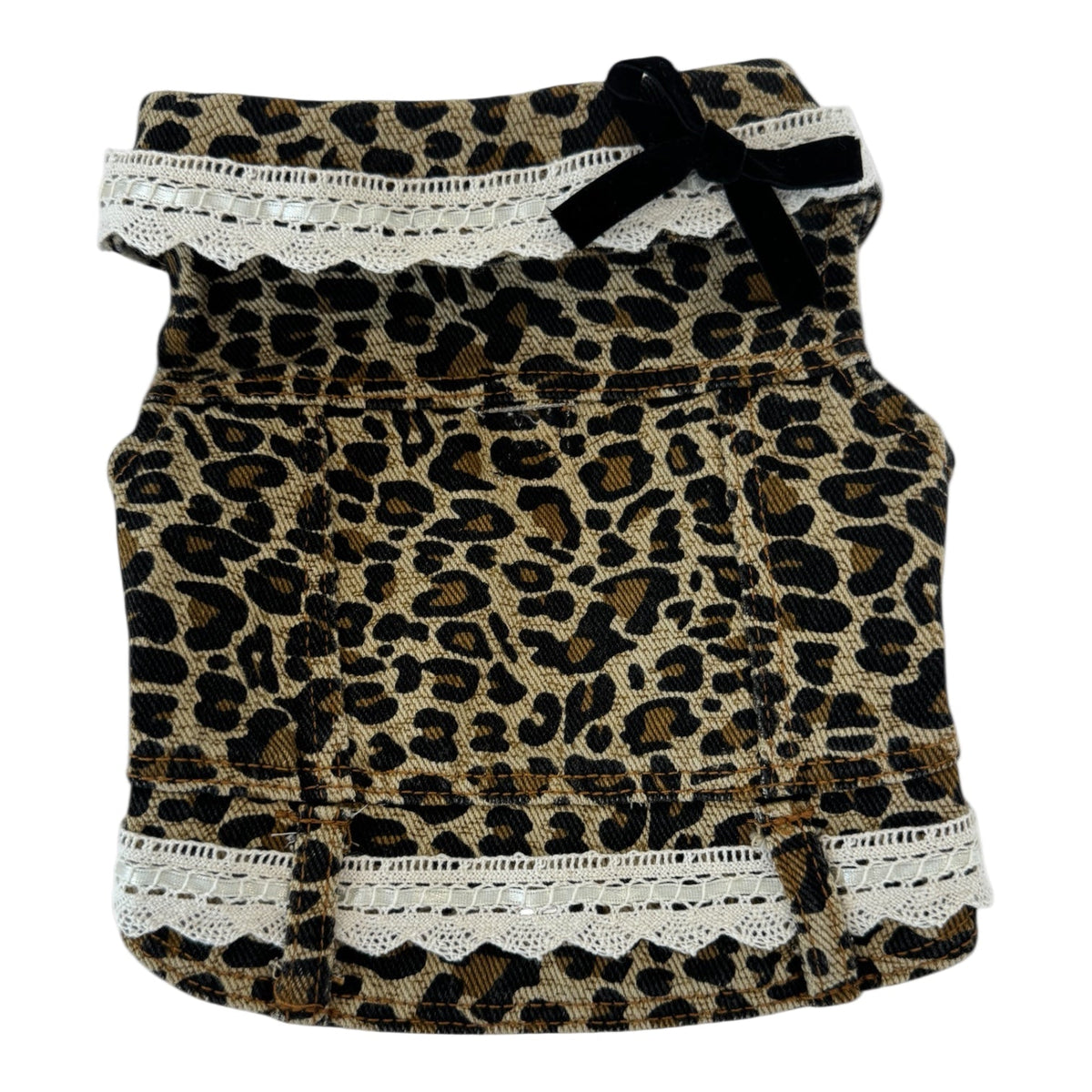 Elevate your pup's autumn wardrobe with this eye-catching leopard print vest that merges contemporary style with everyday wearability. The striking animal print denim pairs beautifully with delicate lace and plush velvet details, capturing all the...