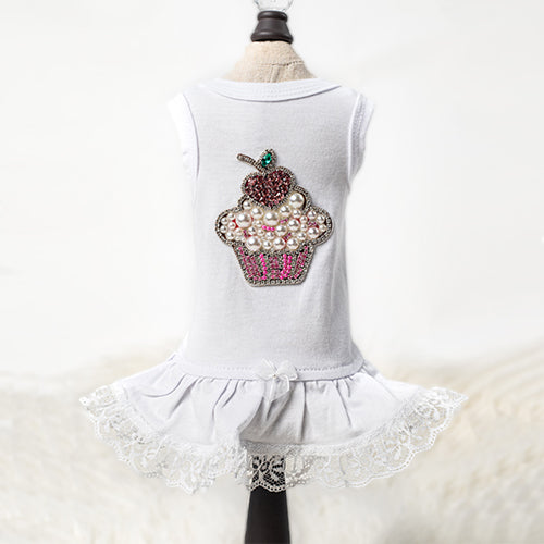 Lil Miss Cupcake Dog Dress White offers a must-have for pet parents. The Lil'Miss Cupcake Dress is adorned with a crystal and pearl cupcake applique. This dress is perfect for your sweet baby. Wash by hand gently, and lay flat to air dry. Sizes - XXS - L