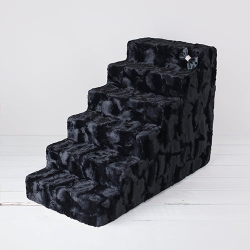 Luxury Pet Stairs 6 Step Black Diamond offers tailored for pets. Luxury Pet Stairs handmade by Hello Doggie, covered in soft and silky luxurious fabric with a removable satin crystal bow to add a royalty feel to your home Perfect to help your pet with a boost around the house for high couches and beds for safety and comfort to spend more time with Mommy and Daddy High-density foam provides the perfect balance of stability and support. With a removable covered zipped up to perfection, these pet stairs can be washed and re-zipped back for a nice clean look every time Gentle Wash, Tumble Dry low.
