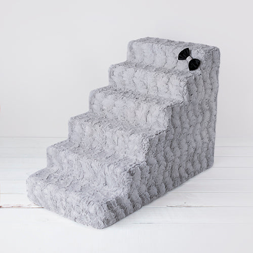 Luxury Pet Stairs 6 Step Dove Grey offers exclusive quality. Luxury Pet Stairs handmade by Hello Doggie, covered in soft and silky luxurious fabric with a removable satin crystal bow to add a royalty feel to your home Perfect to help your pet with a boost around the house for high couches and beds for safety and comfort to spend more time with Mommy and Daddy High-density foam provides the perfect balance of stability and support. With a removable covered zipped up to perfection, these pet stairs can be washed and re-zipped back for a nice clean look every time Gentle Wash, Tumble Dry low.