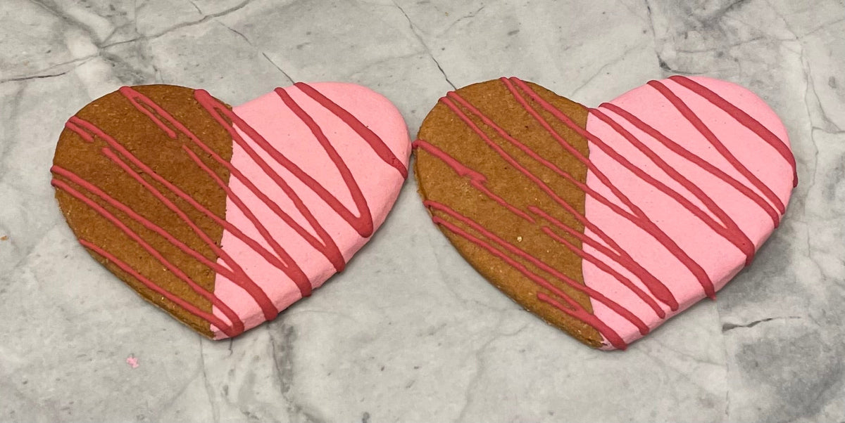How big is your dogs heart? If it's mega sized then these are the perfect treats! Ingredients: rice flour, oat flour, whey, ground flaxseed, egg whites, baking soda, honey, and yogurt icing. Guaranteed Analysis: Crude...